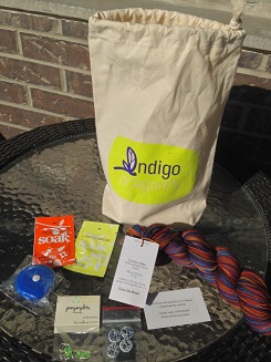 I had to have one of the 5th anniversary goodie bags: a project bag containing a skein of CaribouBaa in a limited edition anniversary colourway called Cinco de Mine!, and some other goodies that included buttons, stitch markers and soak wash packets.